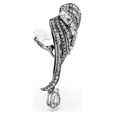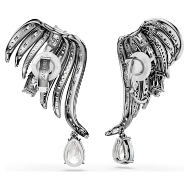 The Vienna Collection celebrates 130 years of creativity and savoir-faire at. Honoring that heritage, these ruthenium plated ear cuffs evoke the graceful feathers of a swan. Each piece is decorated in clear crystals and Zirconia, presented with an elegant mix of cuts in a channel setting. Two pear-shape crystals also hang beneath for extra radiance. Conveying a sense of movement and sophistication, these ear cuffs are a wondrous tribute to iconic mastery of light.