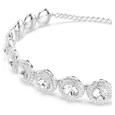 Express the elegant side of your style with this choker in rhodium plating. The chain features a lobster closure and is adorned with glittering angel motifs, creating a meaningful look of serenity and sophistication. Mix and match with other Una Angelic pieces to coordinate your outfit.
