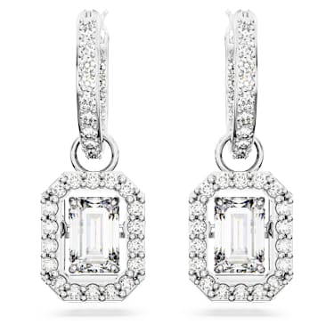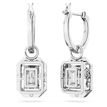Elevate your everyday wardrobe with these exquisite drop earrings from the Una family. Made for pierced ears, this rhodium plated pair showcases octagon-cut dancing stones that are elegantly framed by pavé crystals. The versatile clear colorway makes them ready to be worn solo or paired with other colorful jewels for a curated finish.