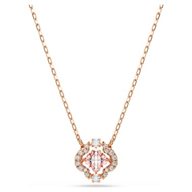 This Una necklace sparkles with a charming floral design. From our much-loved Sparkling Dance collection, it features a pink dancing stone in the shape of a clover, which appears to float inside its setting and is complemented by the rose-gold tone plated chain. This piece of jewelry will pair well with casual outfits and is a great gift for a special someone.