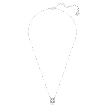 Designed to form a striking octagon shape, this pendant necklace will become one of the hardest working pieces in your wardrobe. A delicate rhodium plated chain holds a clear step cut stone at its center, which moves as you wear it, and is framed by smaller brilliant cut stones. Endlessly versatile, wear it with a white T-shirt for a subtle statement, or layered with other necklaces for a more dramatic look. This necklace is part of the Una family, designed by Creative Director Giovanna Engelbert for Collection I.