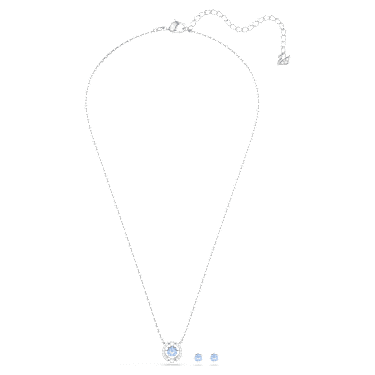Present a thoughtful gift this Mother’s Day with this timeless set, which includes a pair of stud pierced earrings and a necklace. Refined and elegant, it showcases Una’s innovative ‘dancing crystal’ design concept, with a circular motif in pavé enclosing a floating sparkling pastel blue stone. Plated in rhodium, it is luxurious with a playful touch.