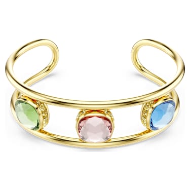 This joyful Chroma Twist cuff is a playful example of savoir-faire. Offering endless styling options, the gold-tone plated band features a row of green ReCreated™ crystals on one side, with blue ReCreated™ crystals and vibrant pink crystals on the other. Simply flip them over to suit your mood or outfit. A versatile choice to wear…