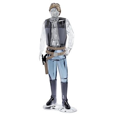 Blending craftsmanship with the Star Wars universe, the heroic smuggler Han Solo sparkles in brown, blue, gray and clear crystal, with red stripes printed on his pants. This unique design features 347 facets, as well as black and gray lacquered metal details. It combines perfectly with other pieces from the Star Wars collection. Decoration object….