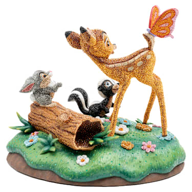 Immerse yourself in this enchanting Disney scene, where the young fawn, inspired by Bambi, spends an idyllic summer’s day with his forest friends. Over 43,000 hand-set crystals were used to create a vision of nature, where Disney’s characters Bambi, the playful rabbit Thumper, and the shy gentle skunk, Flower, play together. Take note of the…