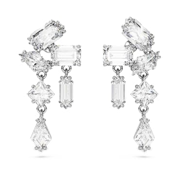 Gema drop earrings – Asymmetrical design – Mixed cuts – Long – Multicolored – Rhodium plated 5656417