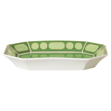 Elevate your tablescape with this small Signum tray. Crafted from porcelain, the tray reflects signature octagon shape with a matching geometric pattern in green. It’s a sensational way to bring color and elegance to any occasion. This tray was created in partnership with porcelain brand Rosenthal. Do not use in the dishwasher or microwave. Article…