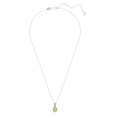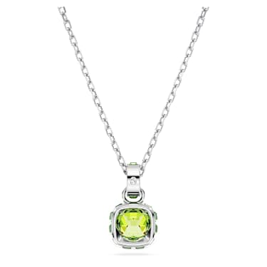This delicate pendant is inspired by the birthstone of August. Hanging from a fine chain with a shimmering link of crystals, the rhodium plated jewelry features a single square-cut stone in a peridot green hue, representing a fresh perspective and empowerment every day. This meaningful design makes a magical birthday gift or can be worn to celebrate a time that is significant to you.