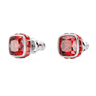 Vibrant, versatile and easy-to-wear, this pair of pierced earrings is inspired by the birthstone of July. The rhodium plated jewelry features a square-cut stone in a flame red hue, inspiring the wearer to express themselves wholeheartedly and live life to the fullest. A meaningful gift for a loved one or a perfect gift for yourself.