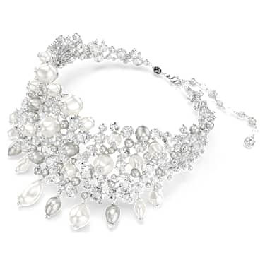 Radiant, elegant, and expressive, this Constella choker is the ultimate statement piece for a special occasion. Showcasing an intricate level of savoir-faire, the rhodium plated design features various sizes of clear crystals and white and gray Crystal Pearls, combining to create a truly refined appearance. Pair it with the matching clip earrings or brooch for a truly showstopping look.