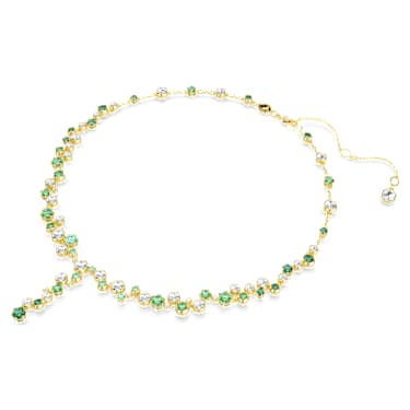 This starry necklace from the Constella family is as intricate as it is captivating. The t-shaped silhouette showcases an all-around decoration of crystals and Zirconia, with a mix of hypnotic green shades and clear tones that perfectly match the gold-tone plated setting. Wear with other Constella pieces to exude vibrancy and joy.