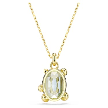 This effervescent Gema pendant will fill your everyday style with color. Suspended from a delicate gold-tone plated chain, the central motif features a large green crystal surrounded by smaller crystals in a joyful bubble prong setting. The expert faceting and various hues ensure this pendant catches the eye at all times. Pair it with a matching bracelet to maximize the energy-boosting effect.