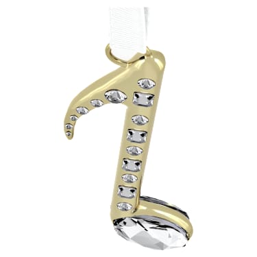 Create harmony in your festive décor with this refined music note ornament. Suspended from a white grosgrain ribbon, the luxurious ornament is crafted in glossy champagne gold-tone metal and is embellished with clear crystals on each side. Designed to cast beautiful light reflections throughout the season, it makes a unique gift for anyone who adores joyful melody. Decoration object. Not a toy. Not suitable for children under 15.
