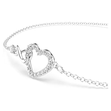 This rhodium-plated bracelet by is an expression of eternal love. It features a twin element showing a heart and an infinity symbol intertwined. A single, bright stone adorns the infinity symbol, adding a brilliant touch to the design. This bracelet is the perfect gift for an important woman in your life.