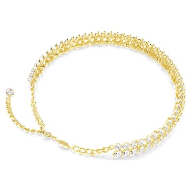 Crafted for maximum radiance, this gold-tone plated choker follows the expressive pattern of foliage, giving you a nature-inspired piece of jewelry for a statement look. The gold-tone plated design features two continuous rows of around 144 oval crystals in prong settings, which combine to create a stunning effect. It’s the ultimate example of savoir-faire and is perfect for highlighting your own individual style.