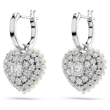 Bring a beautiful touch of love to your style with these expressive pierced earrings. Each rhodium-plated piece has been created with a heart-shaped cage design for maximum volume. To enhance the domed effect, they are adorned with round clear Zirconia, set in place using the dazzling chatonnage technique. Pair them with a matching pendant for joyful sophistication.