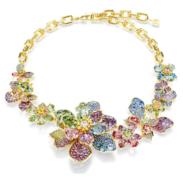 Immerse yourself in nature, as this showstopping necklace comes to life with color and joy. The gold-tone plated design features a seamless blend of flowers and butterflies, each crafted with a variety of crystals in different shapes, shades, and sizes. With pavé, Pointiage™, and chatonnage techniques being used, this Idyllia necklace is a stunning example of savoir-faire, and the ultimate choice for extravagant style.