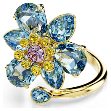 Take your nature-inspired style to the next level with this glittering motif ring. The gold-tone plated band spirals around the finger with a central flower crafted from blue and yellow crystals. The different shapes and shades ensure there is magic to be found in every detail. Combine this ring with a matching Idyllia pendant to achieve an all-over look of color and joy.
