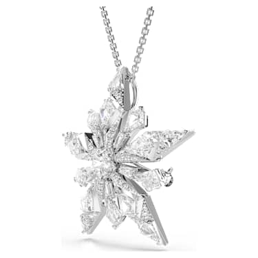 This statement piece of Idyllia jewelry is destined to become the centerpiece of your style. The rhodium plated design can be worn as a striking pendant, while the snowflake motif can also be removed from the chain and worn as a brooch. Throughout the creation, 82 clear crystals are used, including numerous fancy cuts that add wondrous dimension. also showcases its savoir-faire through multiple techniques, such as dazzling pavé and precise prong settings. Completed with a lobster closure, this wintry pendant was made for occasions when you truly want to shine.