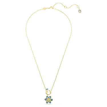 Brighten your style with this crystallized tribute to nature. Suspended from a delicate chain, the central motif is shaped like a flower, with radiant blue petals and a gold-tone plated stem. The mix of shapes and shades gives this Idyllia pendant an infusion of joy, which will boost your mood throughout the day.