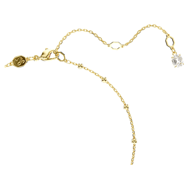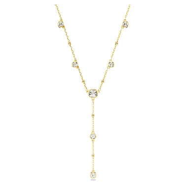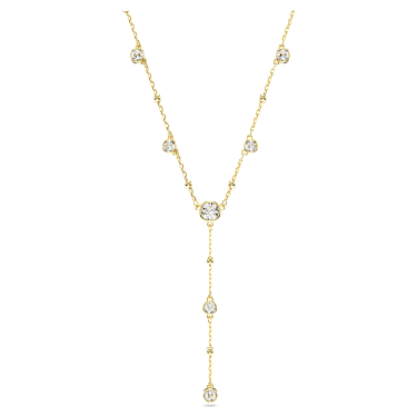 With its distinctive shape, this Imber necklace makes a perfect addition to your jewelry. The design features a gold-tone plated chain, accented with an array of shiny metal droplets and dazzling round-cut crystals in a puffy bezel setting. A delicate strand drops elegantly in the middle, while a single Zirconia is placed in the elongation for added luxury. Pair this piece with some Imber earrings for an eye-catching style match.