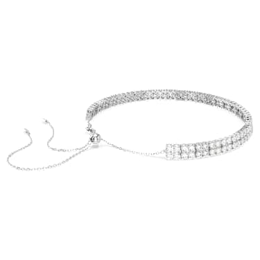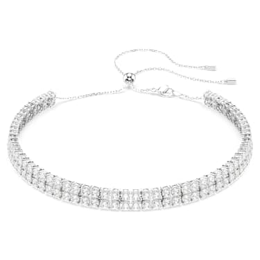 Showcasing mastery of light, this exquisite choker is a true statement of elegance. The rhodium plated design features two rows of prong-set Zirconia in round cuts. A sliding ball closure allows you to easily adjust the jewelry to your size. Embrace a look of all-over luxury by wearing this choker alongside a matching Matrix Tennis bracelet.