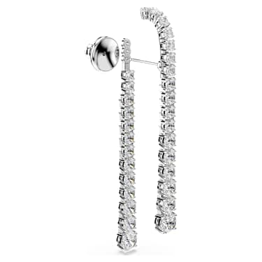 These dramatic trails of light are the perfect showcase of Swarovski’s illuminating style. Each rhodium plated piece features two strands of Zirconia, presented in a clear hue and a rising gradient of sizes. The effect is both elegant and bold, giving you an expressive pair of pierced earrings for any special occasion.