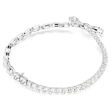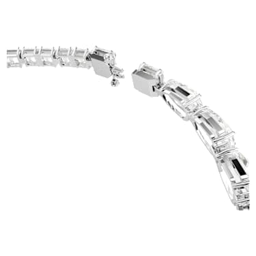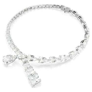 Own the spotlight with this radiant Matrix necklace. The rhodium plated design is adorned with an array of clear crystals in pear and square cuts, with multiple sizes adding unexpected dimensions to the silhouette. A w-hook closure at the back ensures an easy fit, while the added elongation can adjust the piece to any neck size. A statement piece ideal for special occasion styling.