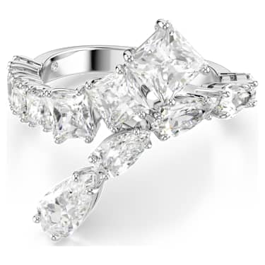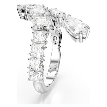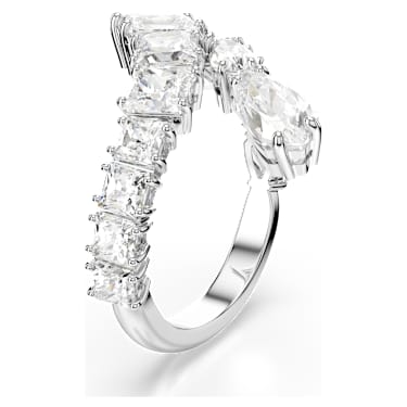 Sophistication shines brightly in this exquisite Matrix ring. The rhodium plated design is adorned with an array of clear Zirconia in pear and square cuts, featuring a gradient of sizes for an unexpected silhouette. Wear it alongside a matching Matrix cuff and enhance your inner light.