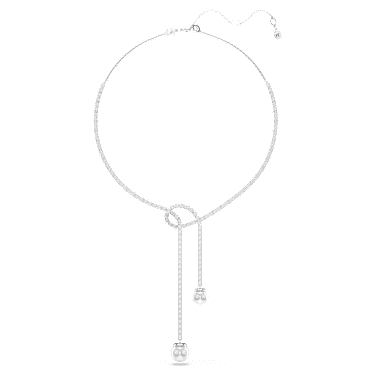 With its unique tied design, this Matrix necklace epitomizes modern chic. Combining both firm and flexible sections, the all-around strand is prong set with clear Zirconia and embellished at each end with a white Crystal Pearl. Complete the look with a matching pair of Matrix earrings.