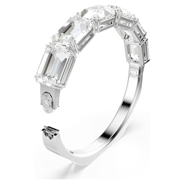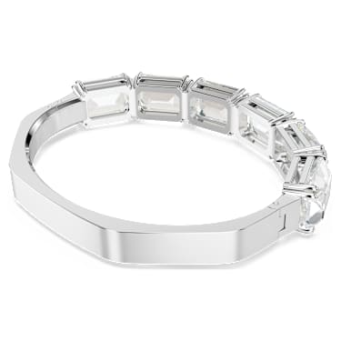 Swarovski’s mastery of light is on full display in this radiant Millenia bangle. Around the wrist, the rhodium plated band is octagon shaped and set with a glittering array of clear octagon-cut crystals. Perfect for amplifying the glamour in both day- and night-time looks.