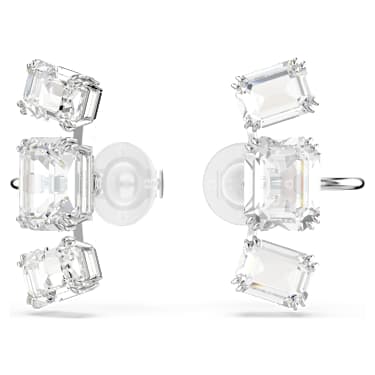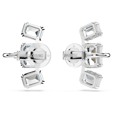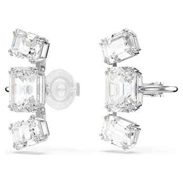 Get the Millenia glow with these light-filled clip earrings. Each rhodium plated piece features a trio of clear octagon-cut crystals, each arranged in both vertical and horizontal settings. The perfect way to infuse your look with radiance.