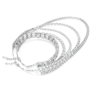 This statement necklace is a sublime example of Swarovski’s finest savoir-faire. The rhodium plated design features five rows of clear crystals, all presented in a bold variety of shapes and sizes. It can be separated into two sets, with a choker and single necklace, or three longer necklaces on their own. Any way you wear it, it’s a wondrous impression of layers that delivers outstanding luminosity. Combine this necklace with some matching Millenia earrings to complete the powerful look.