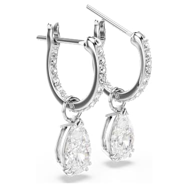 Designed to catch the light at all angles, these exquisite earrings are destined to become your new favorite. Clear pear-cut stones are suspended from rhodium-plated hoops embellished with dazzling pavé. Wear them with your hair up alongside other pieces from the Stilla family.