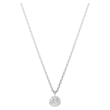 This shimmering layered pendant is the ideal way to fill your style with light. The rhodium-plated design features two chains, each with a domed meteor motif that is beautifully adorned with a snow pavé of clear round crystals in different sizes. For extra versatility, the pendant can be reversed, revealing a halo of crystals around the larger motif, and a single crystal at the center of the smaller motif. A wondrous gift for yourself or a loved one.