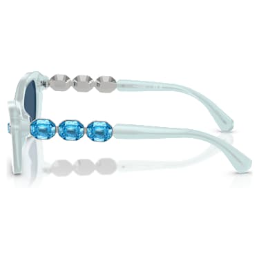 Dial up the color in your everyday style with these beautifully bright sunglasses. Inspired by our iconic Millenia family, the narrow butterfly frames are crafted from light blue acetate and feature matching solid blue lenses. On each temple, three exclusive crystals are placed within a refined metallic bezel setting to form Swarovski’s signature octagon shape. Wear this pair to radiate joy, come rain or shine.