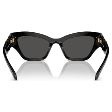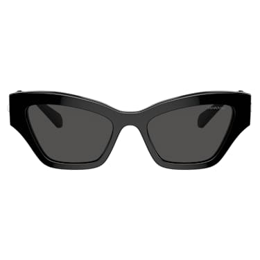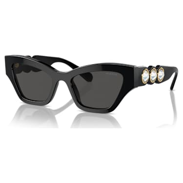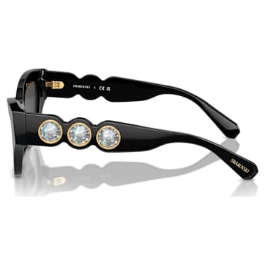 Crafted with a sleek and powerful shape, these striking sunglasses take inspiration from Swarovski’s Imber family. The design features black acetate frames and black lenses, along with three large clear crystals on each temple, placed in a gold-tone bezel setting. These luminous additions provide a truly head-turning look. Pair with matching jewelry from the Imber family.