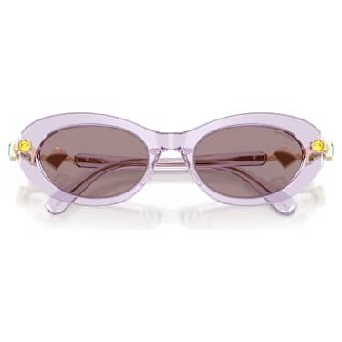 Combining lilac frames with multicolored crystals, these Gema-inspired sunglasses are the perfect choice for joyful expression. The oval-shaped design is crafted with purple lenses and features three crystals on each temple – all revealed in different shapes and candy colors. Match this pair of sunglasses with Swarovski’s Gema jewelry pieces to coordinate your look.