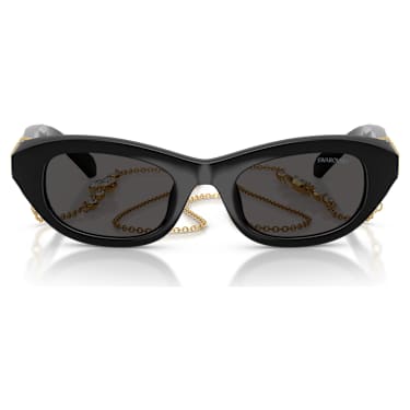 This expressive pair of sunglasses combines innovation with signature style. Inspired by the Millenia jewelry family, the black frames feature an exclusive hinge on each side, set with two clear octagonal crystals. The solid dark gray lenses are then presented in a sleek pillow shape for ultra-modern glamour.