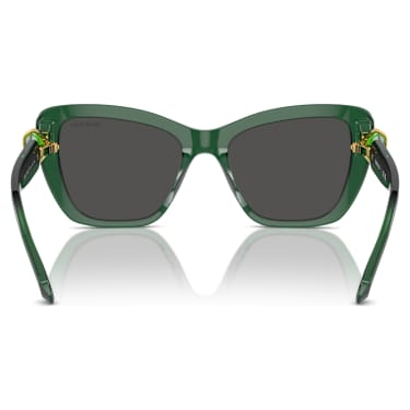 Inspired by our bold Lucent family, these square sunglasses epitomize statement chic. The frames are crafted from green acetate, featuring gray lenses and hinged octagon-cut green crystals on each temple. Gold-tone accents around the stones amplify the luxury. Add this classic look to your wardrobe and face the day in style.