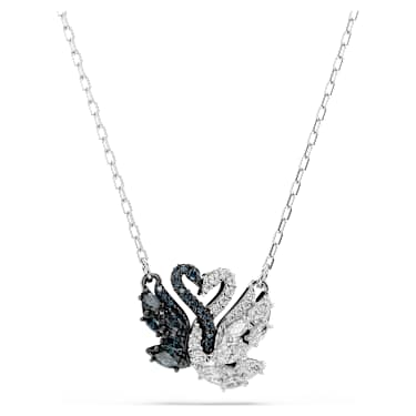 Celebrating Swarovski’s eternal emblem of love and beauty, this swan pendant will infuse any outfit with elegance. Suspended from a delicate chain, the central motif showcases two intertwined swans, in rhodium and ruthenium plating, with an all-over decoration of black and white Zirconia in round and marquise cuts. A beautiful example of savoir-faire that will remain forever timeless.