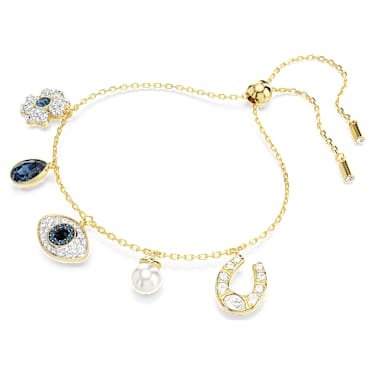 Symbolica bracelet – Crystal pearl – Clover – evil eye and horseshoe – Blue – Gold-tone plated 5692162