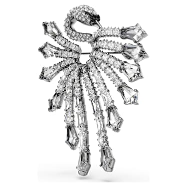 The Vienna Collection celebrates 130 years of creativity and savoir-faire at Swarovski. Honoring that heritage, this ruthenium plated brooch is inspired by the graceful neck and body of a swan. The design is decorated in clear crystals and Zirconia, with feather-like strands that spread outward for a dramatic effect. A beautiful statement piece to convey sophistication, this brooch is a wondrous tribute to Swarovski’s iconic mastery of light. Wear it together with the matching ear cuff to maximize the bold effect.