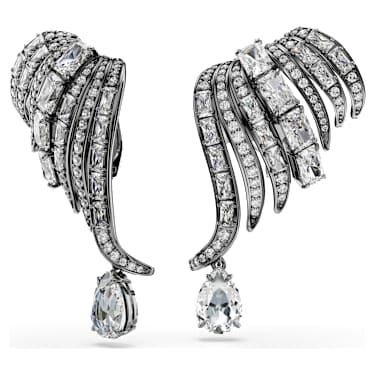 The Vienna Collection celebrates 130 years of creativity and savoir-faire at Swarovski. Honoring that heritage, these ruthenium plated ear cuffs evoke the graceful feathers of a swan. Each piece is decorated in clear crystals and Zirconia, presented with an elegant mix of cuts in a channel setting. Two pear-shape crystals also hang beneath for extra radiance. Conveying a sense of movement and sophistication, these ear cuffs are a wondrous tribute to Swarovski’s iconic mastery of light.