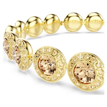 Pure, timeless sophistication. This gold-tone plated Una Angelic bracelet features a row of round caramel crystals, each one framed in a halo of pavé. Combining perfectly with other pieces from the Una Angelic family, it would make a gorgeous gift.