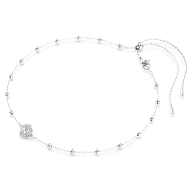 Offering multiple styles in one, this elegant pendant can also be worn as a choker. The rhodium plated chain features a sliding mechanism for an easily adjustable fit and is adorned with small metallic balls and a glittering double-sided motif. Simply reverse the jewelry to showcase a different display of round-cut crystals. Mix and match with other Una Angelic pieces for a look of ultimate radiance.