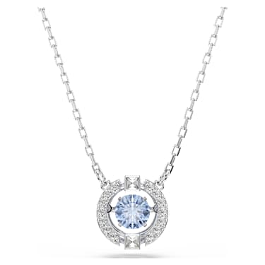 Present a thoughtful gift this Mother’s Day with this timeless set, which includes a pair of stud pierced earrings and a necklace. Refined and elegant, it showcases Una’s innovative ‘dancing crystal’ design concept, with a circular motif in pavé enclosing a floating sparkling pastel blue stone. Plated in rhodium, it is luxurious with a playful touch.